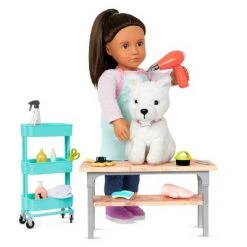 Spell playtime K-H-L-O-E with the Our Generation® 18-inch cheerleading doll! This eager cheerleader has pale green eyes that open and close, and her long, straight blonde hair is lots of fun to brush and style! Khloe has a soft body with plastic arms and legs that rotate, so grab the pom poms and get ready to cheer! Her uniform has easy-open closures that make changing quick and simple, and her adorable hair bow adds extra school spirit to her look. This outfit can also be mixed and matched with other Our Generation® selections, so Khloe will never run out of style! (Additional outfits sold separately. Compatible with American Girl dolls)